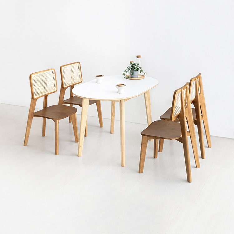 RAMIRA 테이블 12080 HPL 라운드형 + SHENBON 의자 라탄 E형 4인 세트