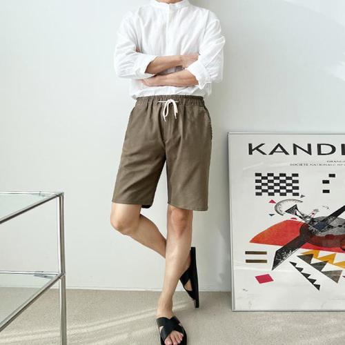 [리빌모아]남자 린넨 5부 린넨반바지 면반바지 여름바지 슬렉스반바지DJ-PTH-SDON3010-카키