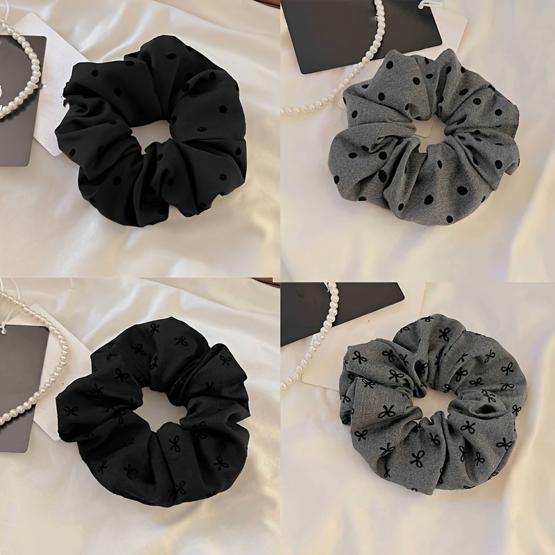 TEMU 여성용 폴카 도트 리본 프린트 대형 헤어 타이 4개 세트, 탄력 있는 포니테일 홀더