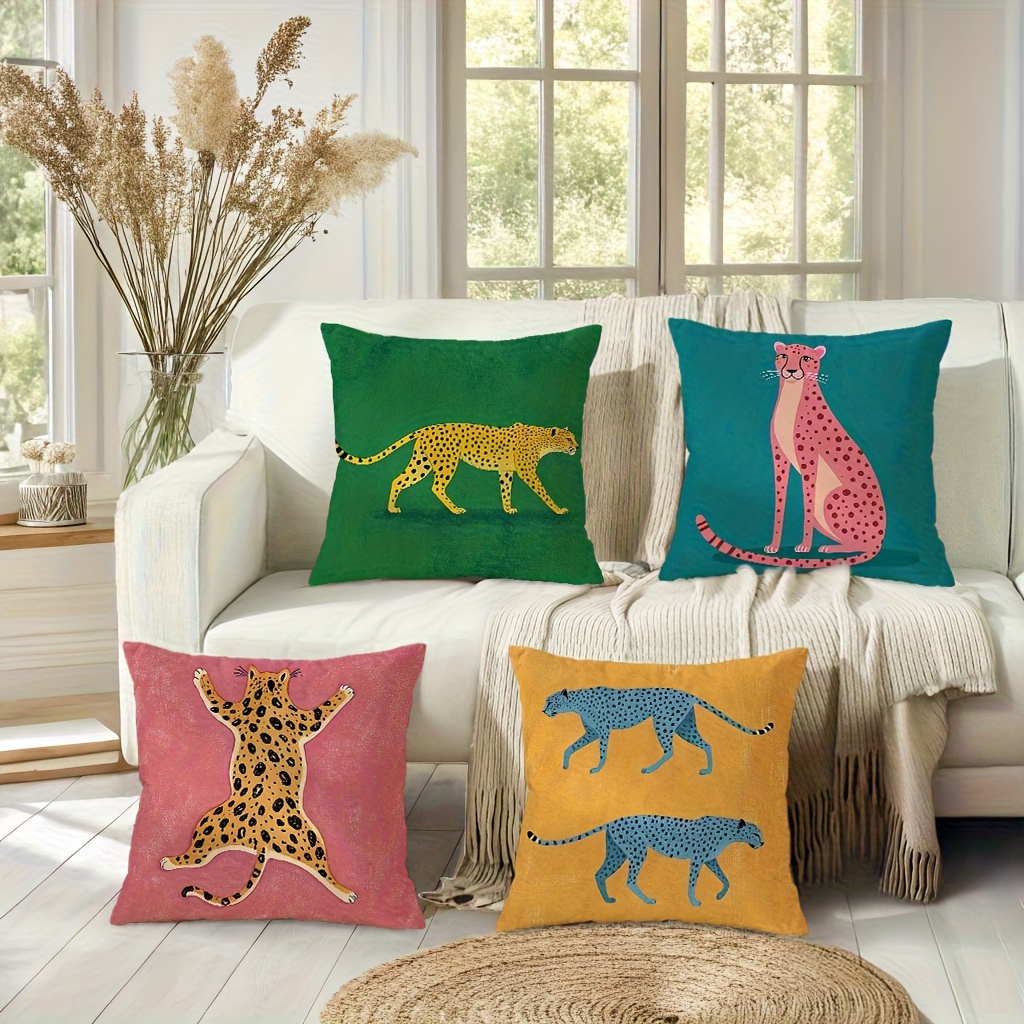 TEMU 4개 세트 네온 프린트 베개 커버 - 추상 도트 패턴, 지퍼형 소파 & 파티오 쿠션 커버, 실내/야외용, 편안한 원단, 충전재 미포함