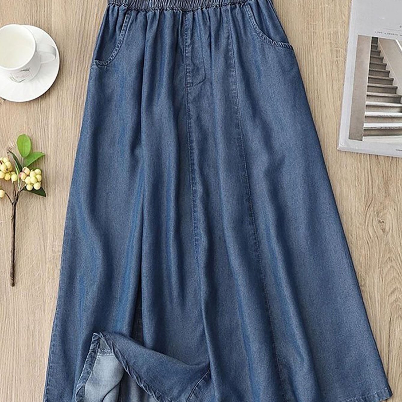 TEMU 여성 여름 패션 포켓 하이웨스트 옆트임 미디 a라인 데님 스커트 데일리 통근 날씬해 보이는 편안한 힙업 청치마 슬림소녀 SLIM GIRL