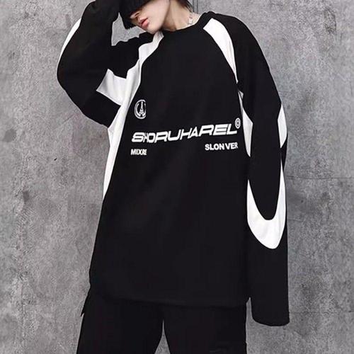 간절기용 남성 면 긴팔 티셔츠 일반핏 배색 디자인 WFLLZUH