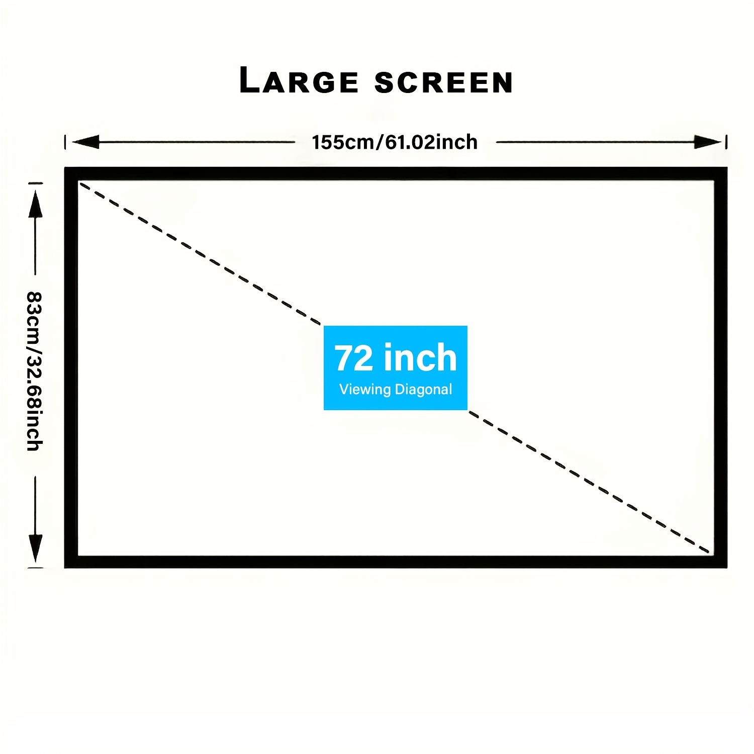 TEMU 동영 72인치 휴대용 프로젝션 스크린, 스마트폰/노트북 호환, 4K 울트라 HD 대형 영화 스크린, 주름 방지 경량 원단, 수동 홈시어터 프로젝터 스크린, 야외/실내 사용, 간편한 무드릴 설치 (2026), 가정, 캠핑, 교실, 사무실용