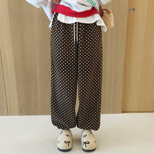 아이미마인 / 굿도트 배색 땡땡이 하이 플리스 밴딩 도톰 기모 겨울 조거팬츠 (2color)