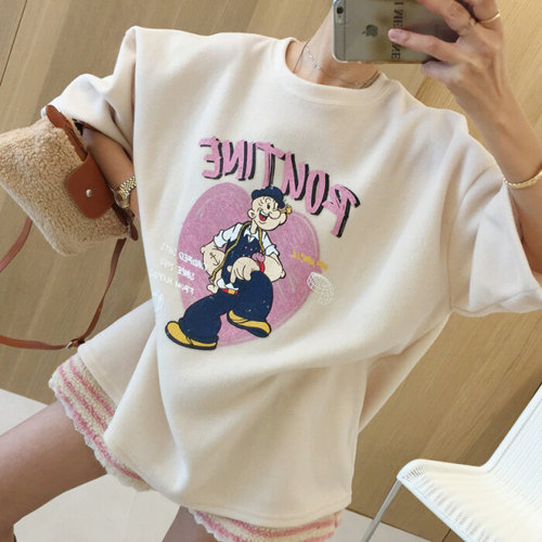 아이미마인 / 말랑 유넥 언발 트임 무지 루즈핏 박시 피치기모 겨울 반팔티셔츠 (3color)