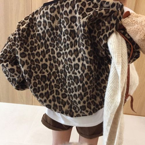 아이미마인 / 레오링 호피패턴 라운드 오버핏 겨울 기모맨투맨 (2color)