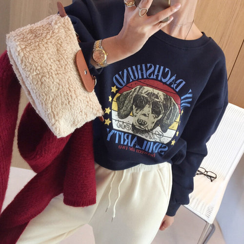 아이미마인 / 비글 레터링 프린팅 라운드 세미크롭 기모 맨투맨 (3color)
