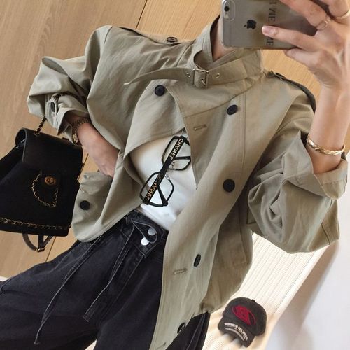 아이미마인 / 프렌치시크 벨티드 하이넥 더블 버튼 트렌치 하프자켓 (4color)