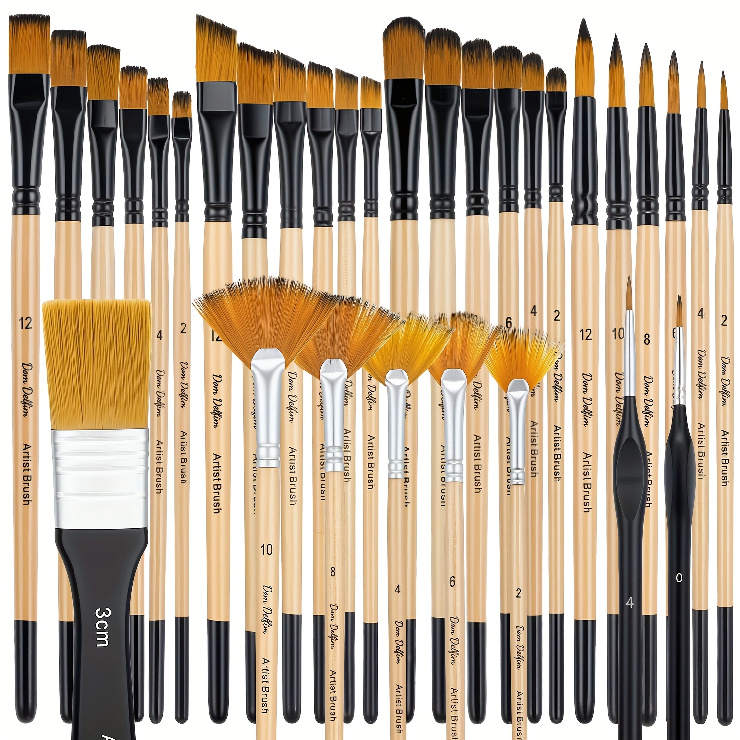 TEMU 32개 페인트 브러쉬 컬렉션, 시리즈, 라운드, 필버트, 플랫, 팬, 앵글 및 섬세한 디테일 브러쉬를 포함한 다양한 모양의 나일론 브러쉬 특징, 아크릴, 유화 및 수채화 작업을 하는 및 초보자에게 이상적