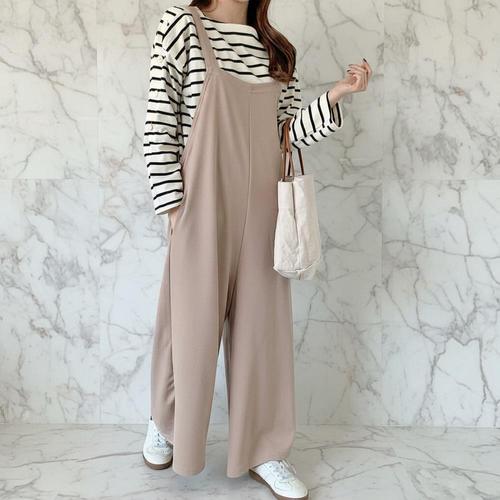 [셀러허브_여성트랜드패션]여성 넓은 롱 내추럴 슬리브리스 점프수트