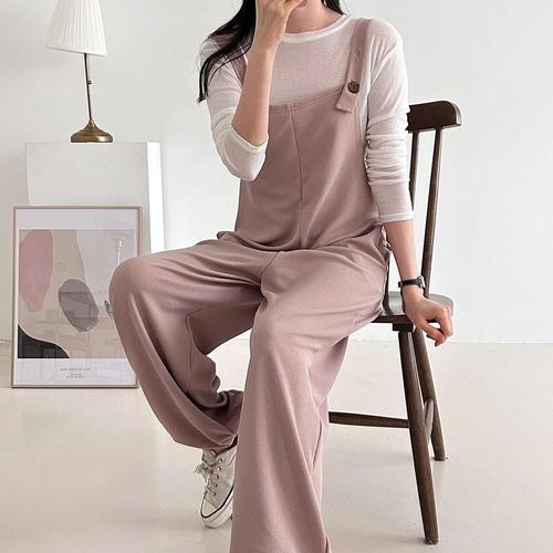 |KSP9400|여성 와이드 조거핏 버튼 멜빵 점프수트 봄철 등원 패션