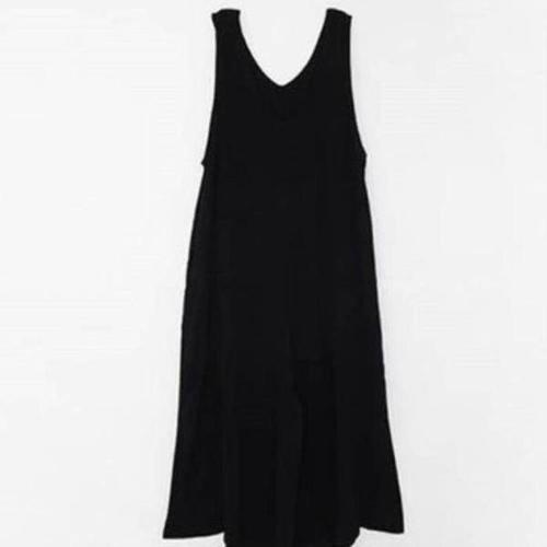 여자 폴리스판 루즈핏 와이드 민소매 점프슈트