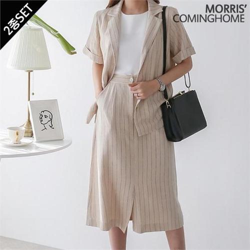 [모리스커밍홈]줄지린넨자켓 스커트 세트_M2007SE032B