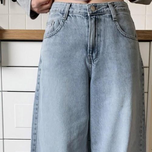 [옷자락]여자 하이웨이스트 루즈핏 아이스 워싱 데님