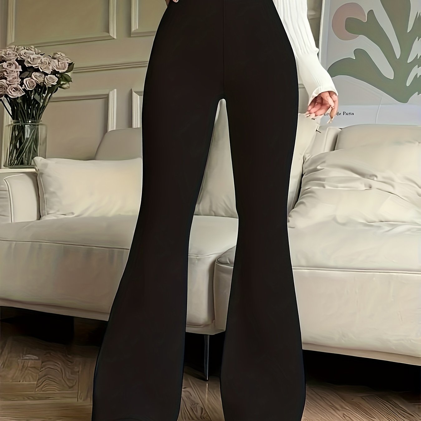 TEMU 여성용 하이웨스트 플레어 팬츠 블랙 섹시 레깅스 캐주얼 바지
