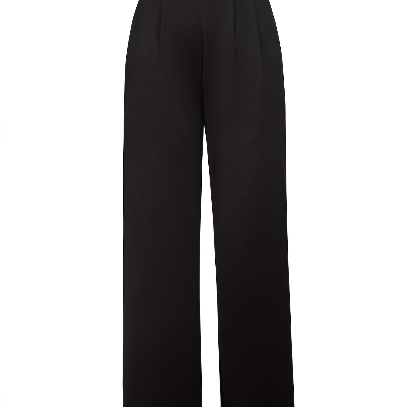 TEMU 플러스 사이즈 - 플러스 사이즈 - 여성용 우아한 하이웨이스트 탄성 허리 밴드 레그 와이드 레그 롱 팬츠 | 3D 테일러링 & 매력적인 루즈핏 단색 캐주얼 팬츠, 슬란트 포켓 포함, 모든 계절에 적합