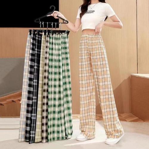 통 통바지 와이드 아이스팬츠 여성 체크 팬츠 홈웨어 WFIOWNT