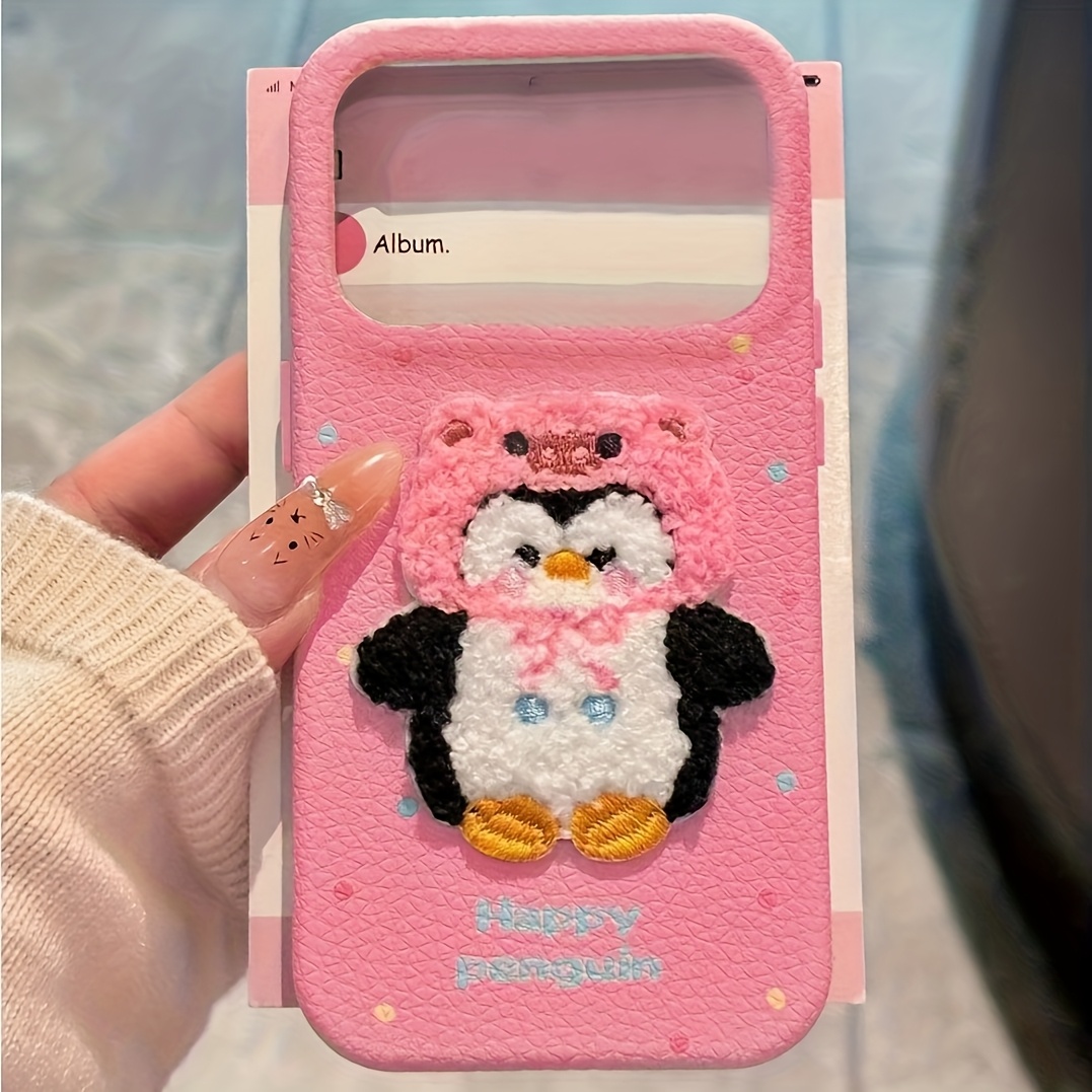 TEMU 휴대폰 케이스 - 가을/겨울 폴카 도트 자수 펭귄 리치 패턴 휴대폰 케이스, TPU 소재로 제작된 입체적인 펭귄 디자인으로 가벼운 낙하 방지 기능 제공, iPhone 17/17 Pro Max/17 Air/17 Pro/16/11/13/15 호환