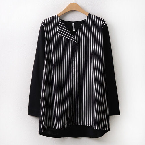 나야홍 / 아이우먼 펄브이배색골지블라우스 OLT869M602 빅사이