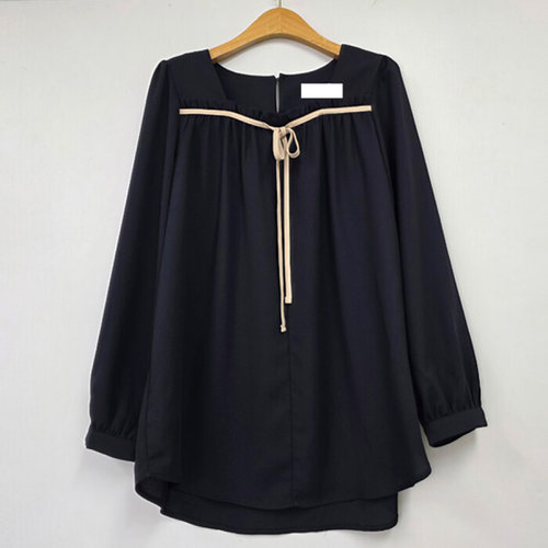 [아이우먼]둥근셔링리본블라우스 YPX232M602 빅사이즈
