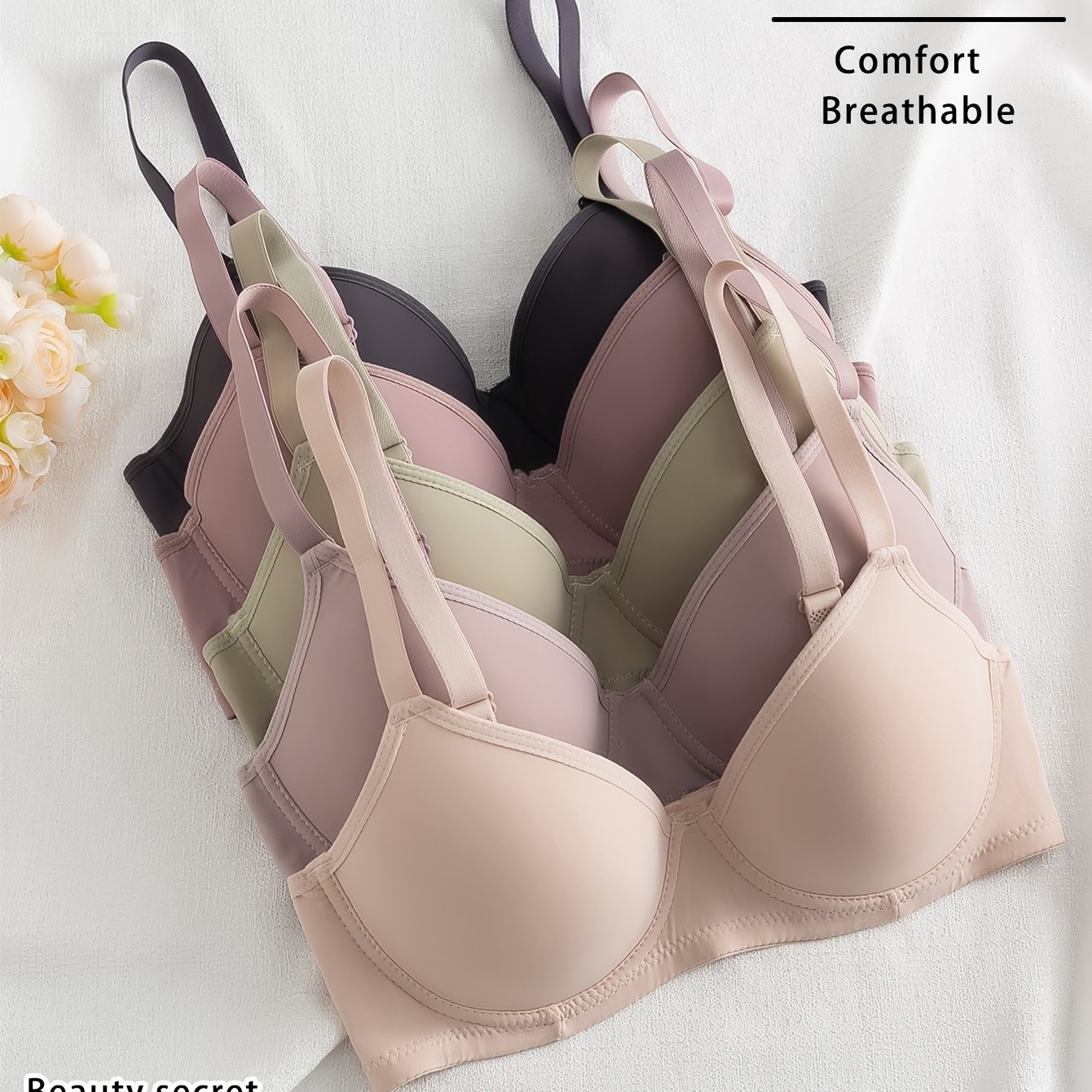 TEMU 단색 고정형 브라 5개, 풀컵 사이즈 모음, 여성용 브라 멀티 컬러 스틸 철골