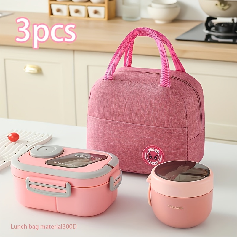 TEMU 3개/세트 휴대용 대용량 도시락 가방+도시락통+아침 컵, 대용량 학생용 도시락통, 접이식 알루미늄 호일 핸드백, 학교 가방, 휴대용, 여행 및 출근용