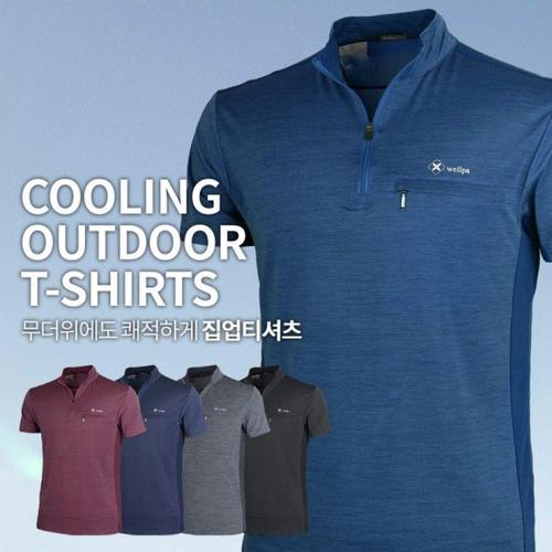 [에이치플러스몰]반팔 쿨 캐주얼 반팔 냉감 필수템 집업 아쿠아 티셔츠