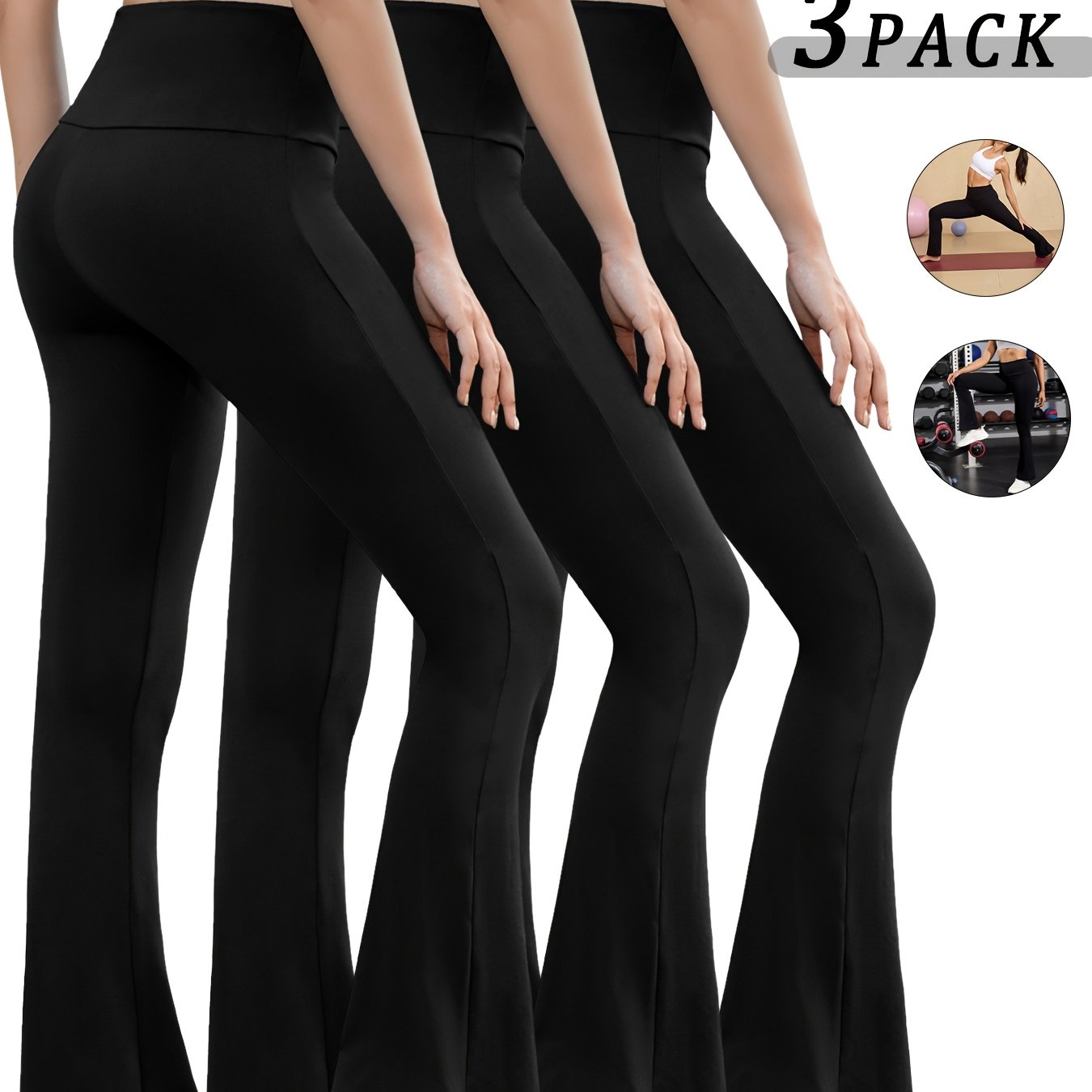 TEMU 3피스 여성용 울트라 소프트 하이웨이스트 플레어 레깅스 - 복부 컨트롤, 신축성 있는 부츠컷 팬츠, 블랙, 헤더 그레이, 버건디 - 편안한 요가 및 캐주얼웨어