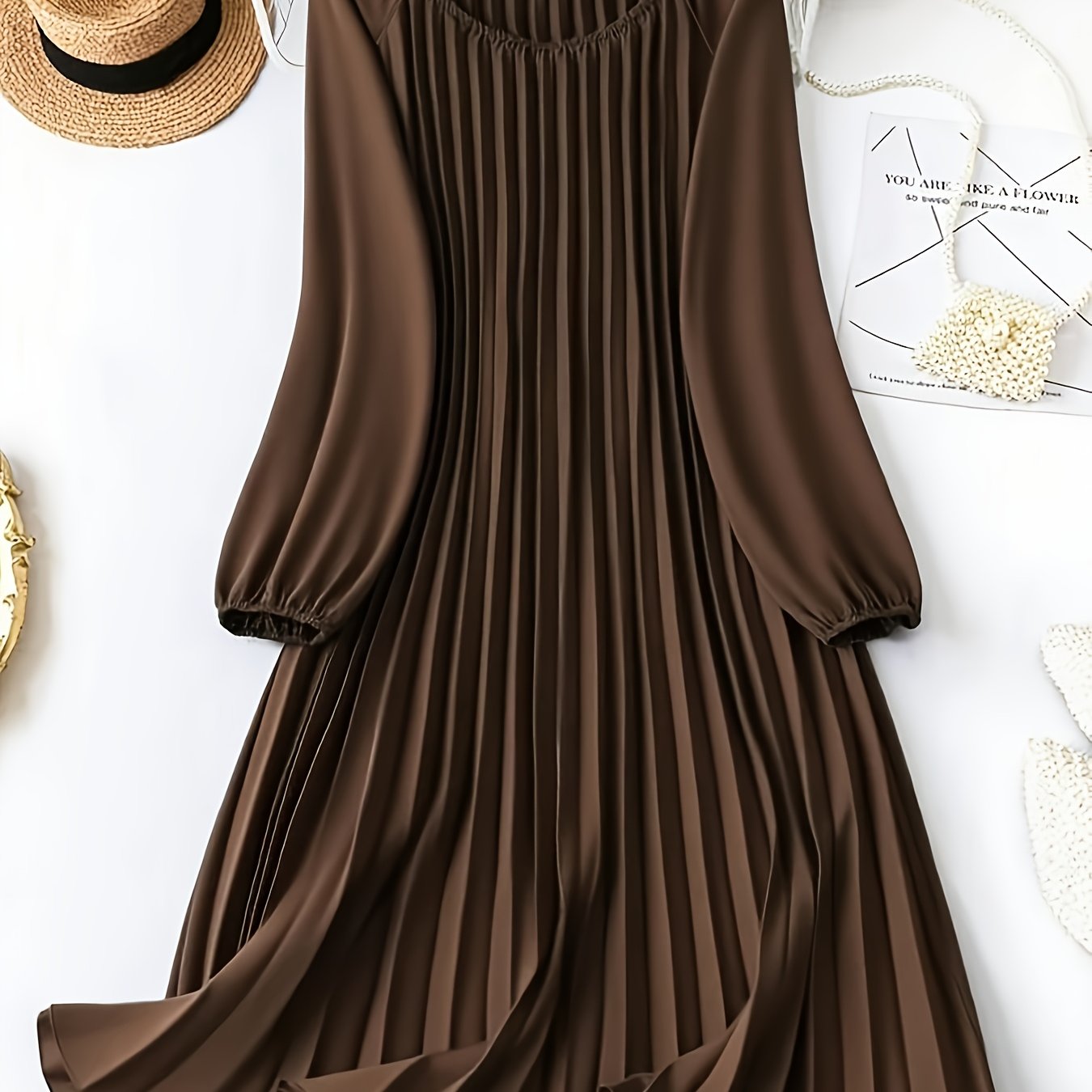 TEMU 여성용 우아한 솔리드 컬러 A라인 드레스 - 퍼프 소매 긴팔 라운드넥 드레스, 세탁기 사용 가능한 솔리드 컬러 웨딩 게스트 가운, 파티 웨딩 연회용, 봄 여름 가을 정장