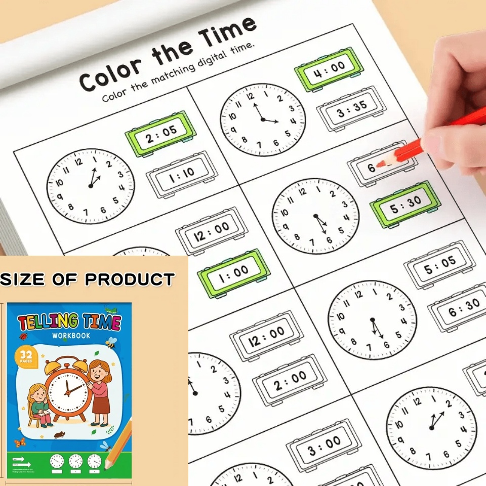 TEMU 32페이지 수학 시계 연습장 - 색칠하기 페이지와 재미있는 시계 읽기 활동, 유치원, 초등학교 1학년용 산수 연습 - 홈스쿨링 또는 학교용 종이 워크북, 초기 학습자에게 적합