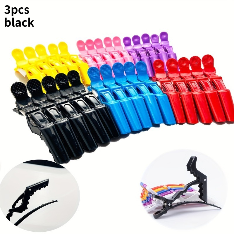TEMU 헤어 섹셔닝 및 스타일링용 플라스틱 악어 클립 3개