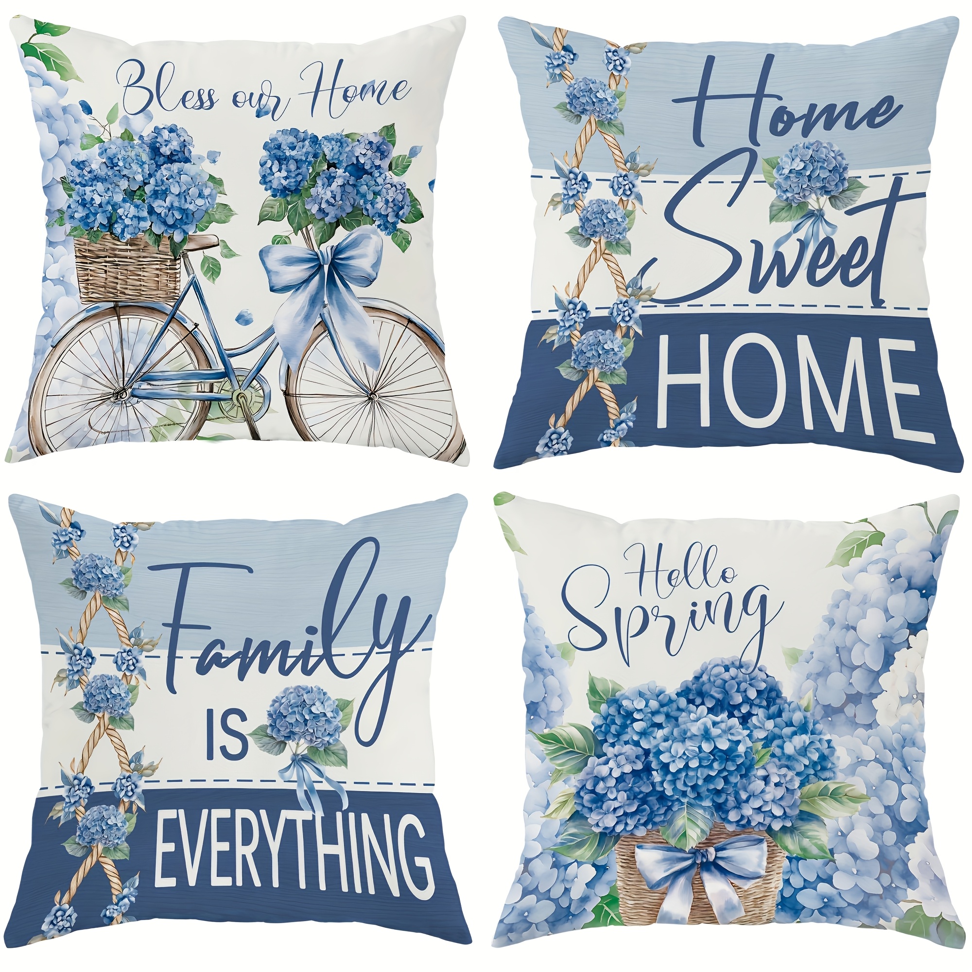 TEMU 모던 수국 스로우 필로우 커버 4개 - 양면 쿠션 케이스, 지퍼 잠금, 기계 세탁 가능, 소파 침대 거실 장식용, 현대적인 꽃무늬 수국 프린트, 침실용 - 속통 미포함