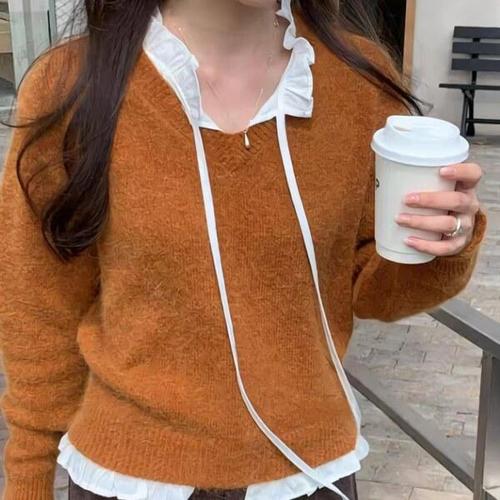 [디자이너몰]여성 프릴 스트링 레이어드 앙고라 니트