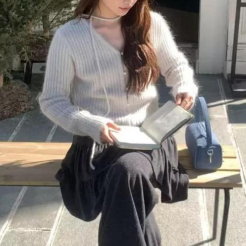 [미라클세븐]여성용 부드러운 핏 일상 앙고라 가디건