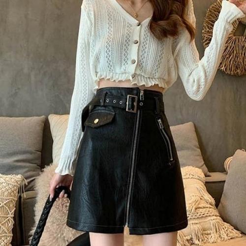 벨트포함 캐주얼 앞지퍼 가죽 스커트 치마 겨울가을 치마 A라인 미니스커트 인조가죽 레더치마 편한스커트