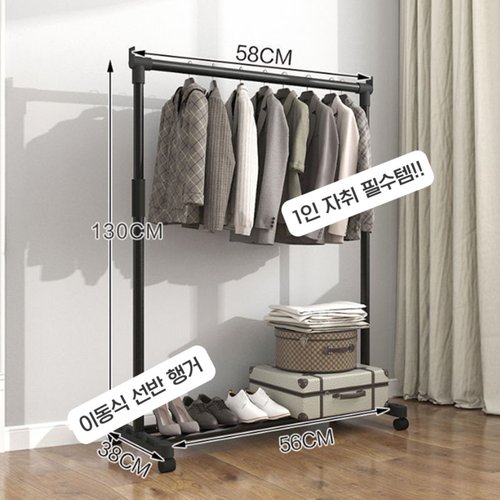이동식 바퀴 행거 철제 옷행거 수납 옷걸이 수납선반 블랙 S835