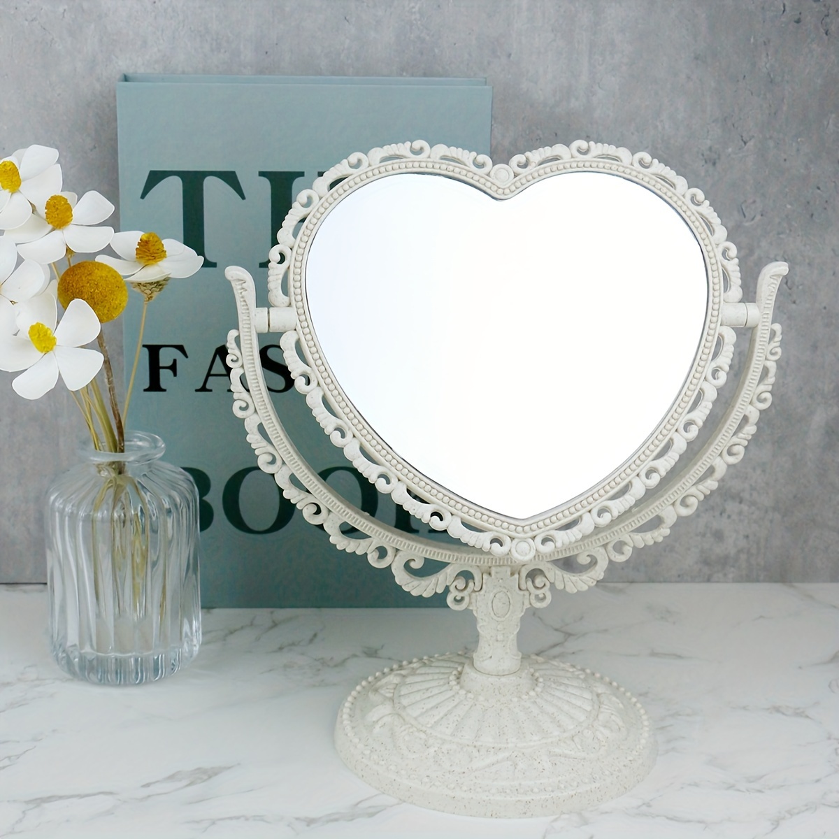 TEMU 라이트 럭셔리 메이크업 거울/침실 데스크탑 고화질 라운드 거울/학생 기숙사 드레싱 거울/홈 거울/ 거울 회전식 거울