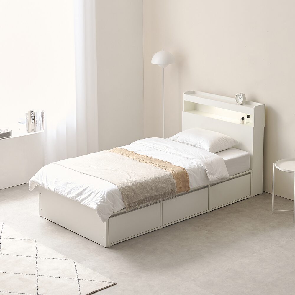 심플비 피크 LED수납헤드 슈퍼싱글 침대세트(독립포켓+40T토퍼매트리스)