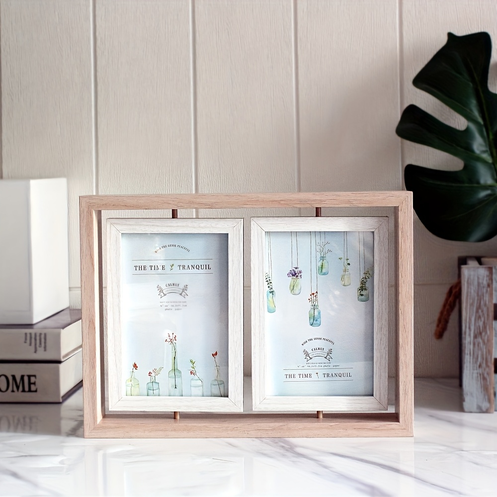 TEMU 1세트 양면 회전식 더블 포토 프레임 4x6인치 사진 디스플레이 테이블 커플 사진 애완동물 사진 액자 결혼식 사진 홈 장식 오너먼트