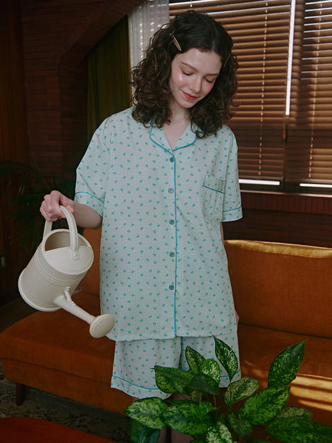 [주디앤] [2PACK] 민티도티 클린핏 반팔 커플 파자마세트