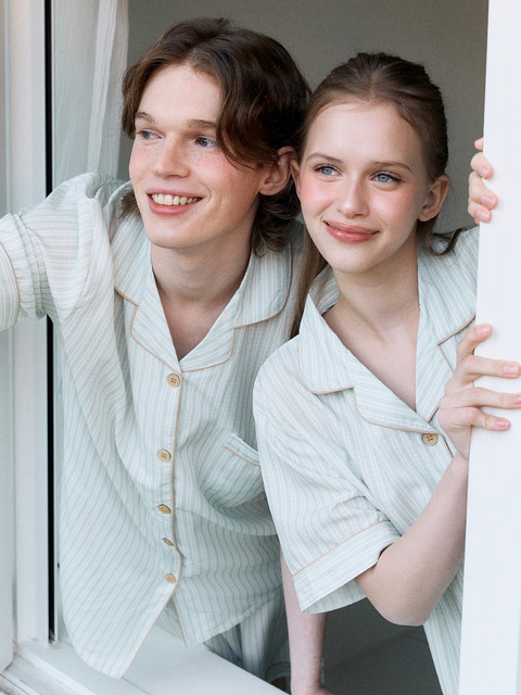 [주디앤] 셔번 면 반팔 잠옷 파자마세트