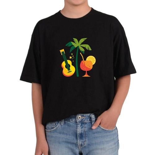 반팔라운드 야자수 기타 오렌지 휴가 그림 전사이즈 WFIX4QT