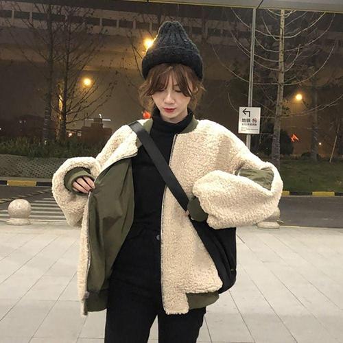[다잇템]여자 겨울 데일리 방한 양면 뽀글이 항공 점퍼