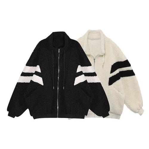 더블레인 두툼한 양털 후리스 집업 플리스