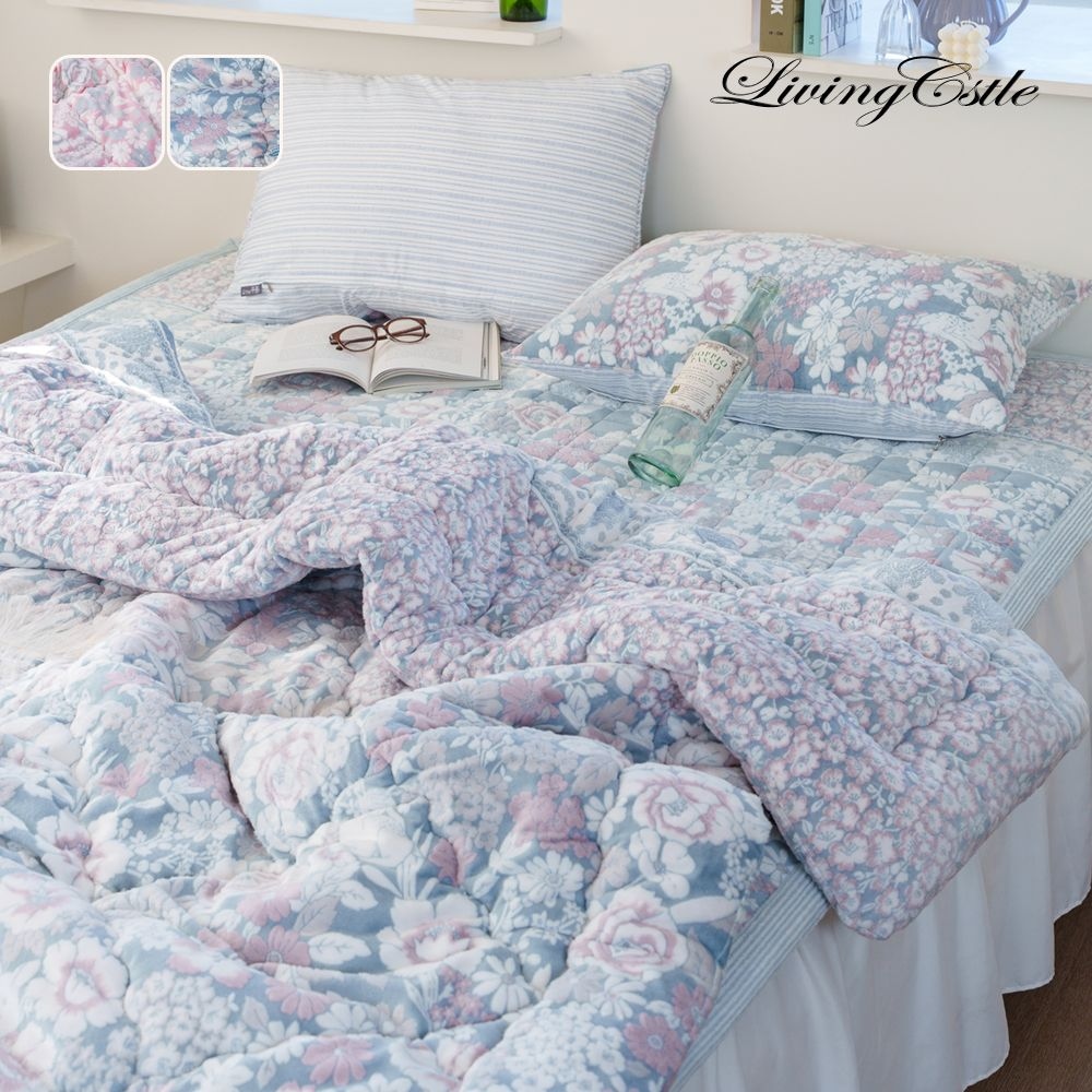 플로럴 소프트마이크로 차렵이불 이불 베개 세트 SS