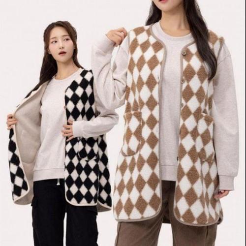 조끼 간절기 베스트 뽀글이 아가일 양털 가을 겨울 여성 WFKSVQD