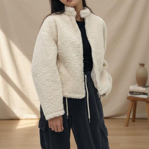 양털코트 여성 넉넉한 품 짧은 크롭 기장 데일리 간절기 자켓