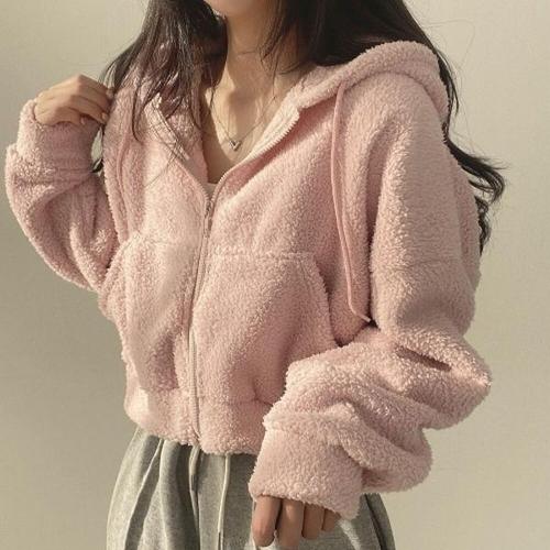 [하프클럽/옷자락]여자 세미크롭 양털 후드집업 데일리 뽀글이 자켓