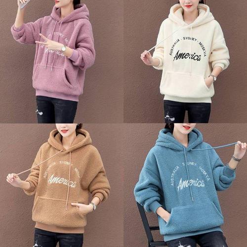 여성 퍼지 반집업 양털 후드티 겨울 오버사이즈 티셔츠