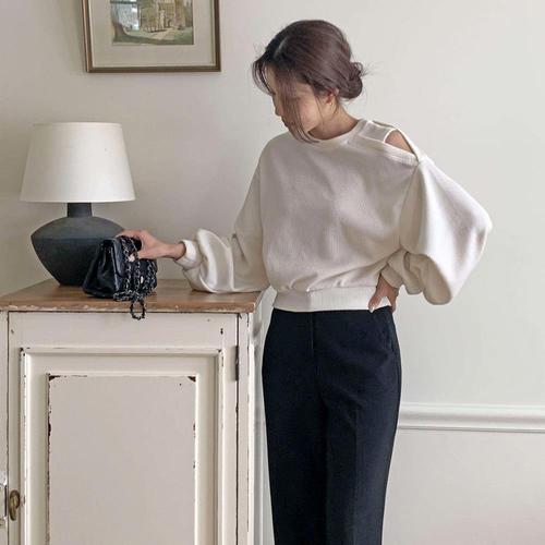 여자 어깨트임 언발 컷팅 옆셔링 퍼프 맨투맨